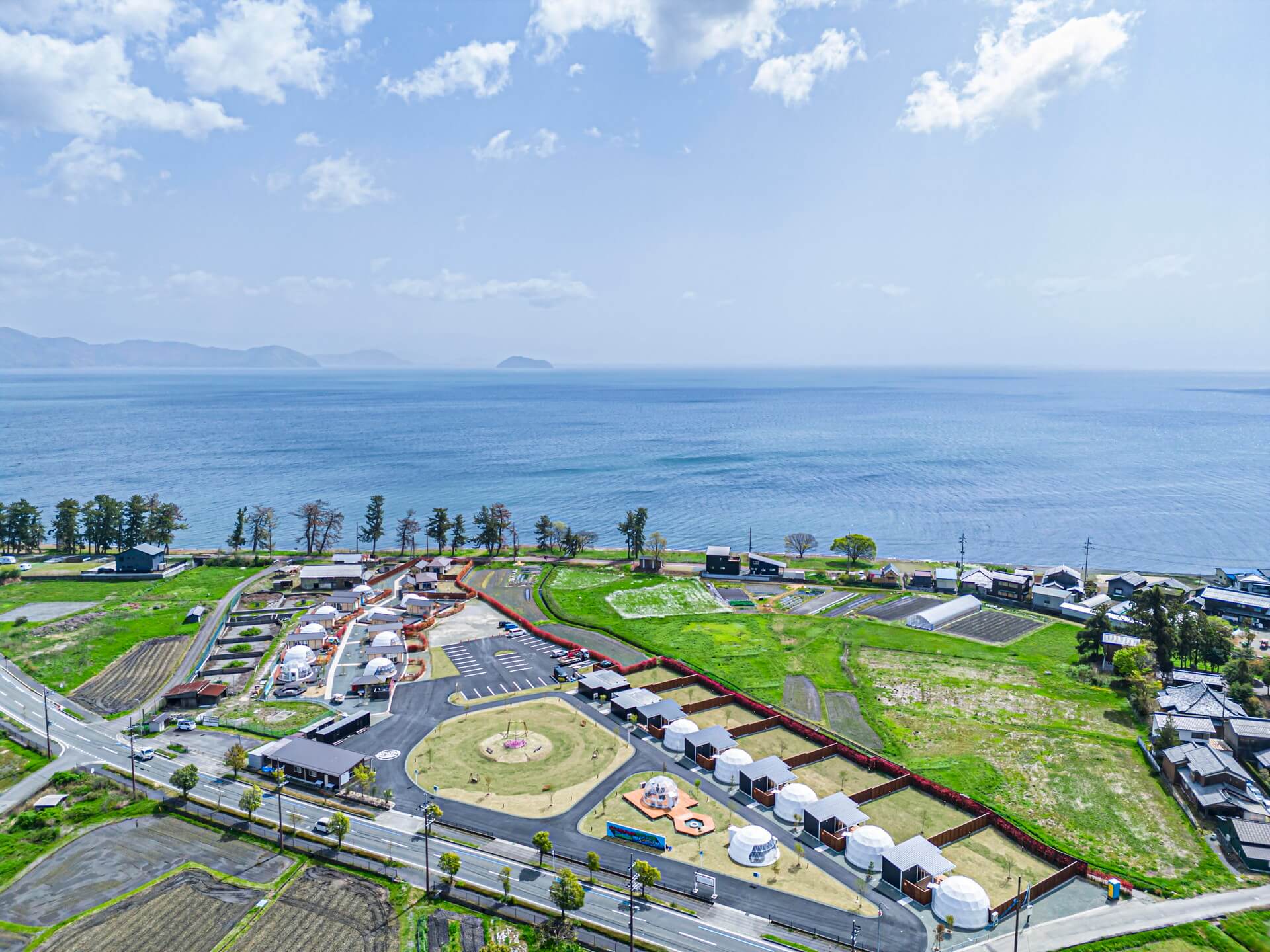 四季の自然を楽しめる場所に、10棟のグランピングテントを配置した『グランピングヴィレッジ滋賀今津浜』