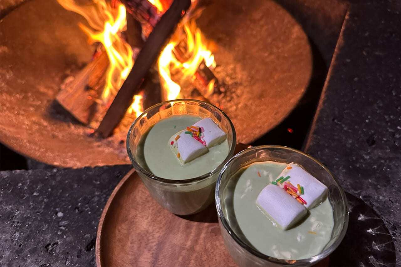 ドリンクの種類は月替わりで変わり、12月はホットチョコレートをマシュマロトッピング付きでご提供、1月は抹茶ラテをご準備します✨